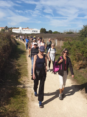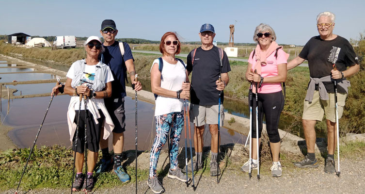 19 septembre: Malgré l'absence de 3 personnes excusées, nous étions 8 au pied du moulin à l'île d'Olonne pour notre marche du jour. Nous avons pu regarder au passage les photos exposées le long des chemins puis continuer notre route vers le pont de la Salaire. Après une petite pause, nous voilà déjà de retour en passant au milieu des marais, prenant le temps d'une photo au pied des saulniers, avant le retour sous un soleil radieux.